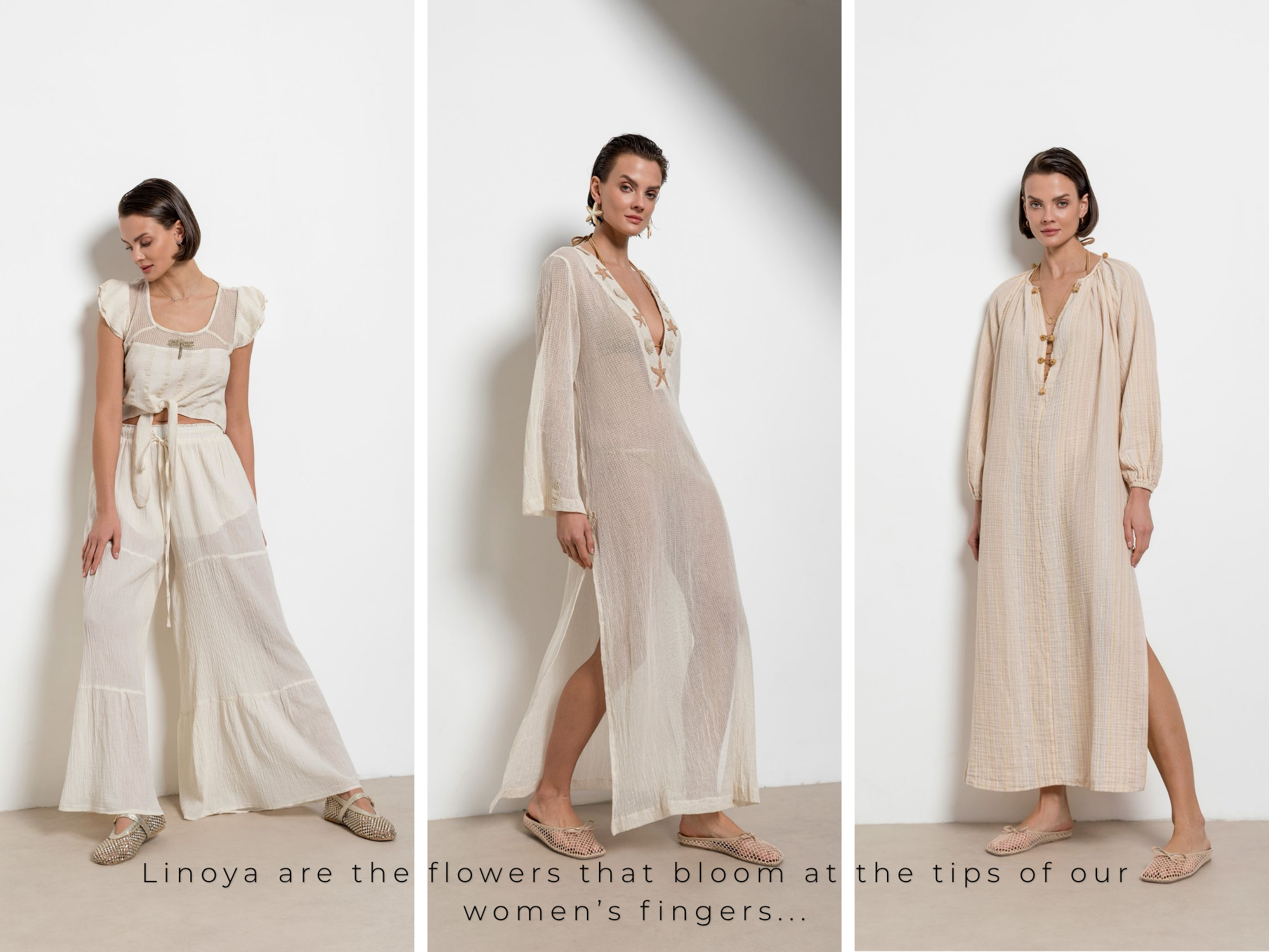 The Linoya Artisan Spring-Summer 2026 Collection tells a story carefully crafted through sustainable, timeless, and minimalist designs. Pieces made from natural fabrics such as linen, cotton, muslin, and rayon are adorned with masterfully executed handcraftsmanship. Each design reflects the pinnacle of attention to detail and artistry.