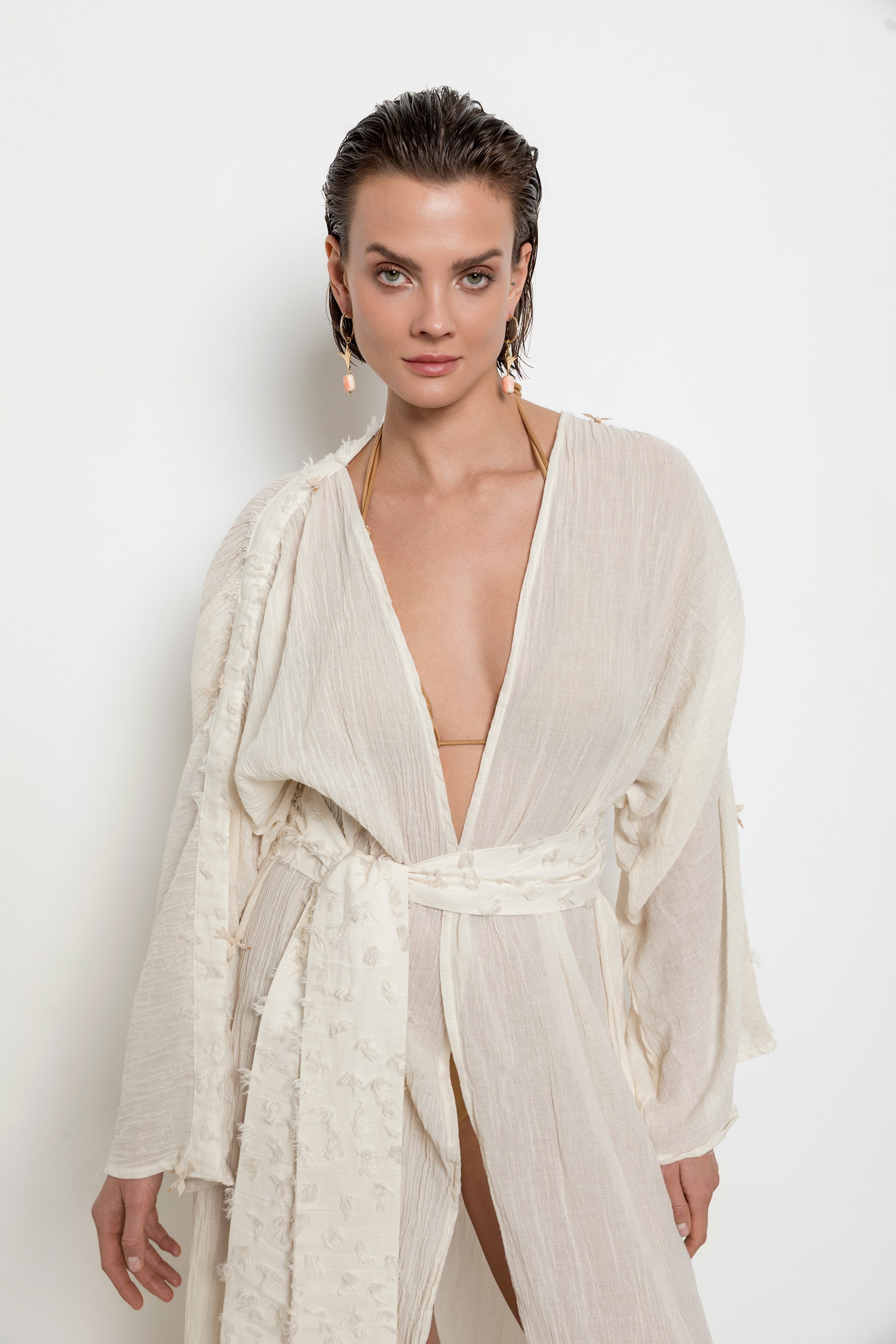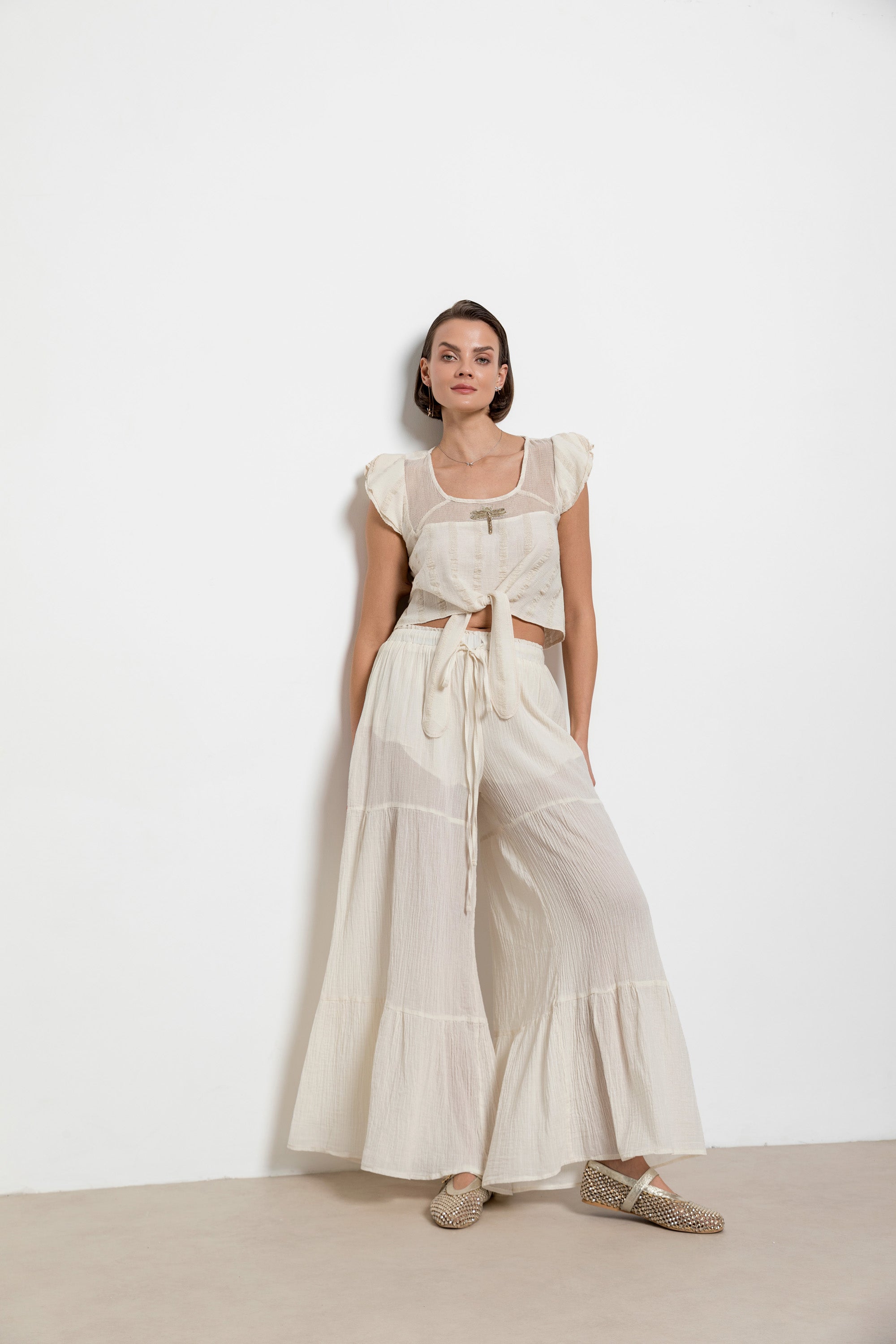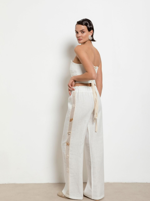 This new season, two main themes shaped by the brand's unique vision go beyond traditional motifs and come to the forefront: designs inspired by the sky and elements clinging to Linoya Artisan's unique fabrics with the rhythm of the sea. These two themes gain new meaning through the handcraftsmanship of talented artisans. The collection features not only needle lace but also different techniques such as traditional lace and wire breaking, interpreting our cultural heritage with a modern perspective, and elevating the perception and elegance of resort wear to a new level.