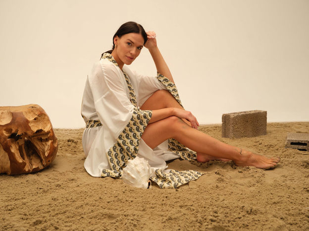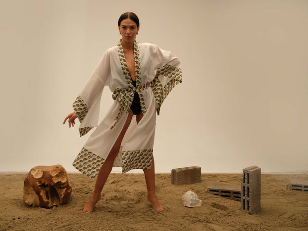 Our kimono model, where you can see Yin-Yang in its details and feel its meanings deeply, intertwined with the Flower of Life, to be with you all day; It is prepared with 100% cotton content fabric with special pattern printed for Linoya Artisan.